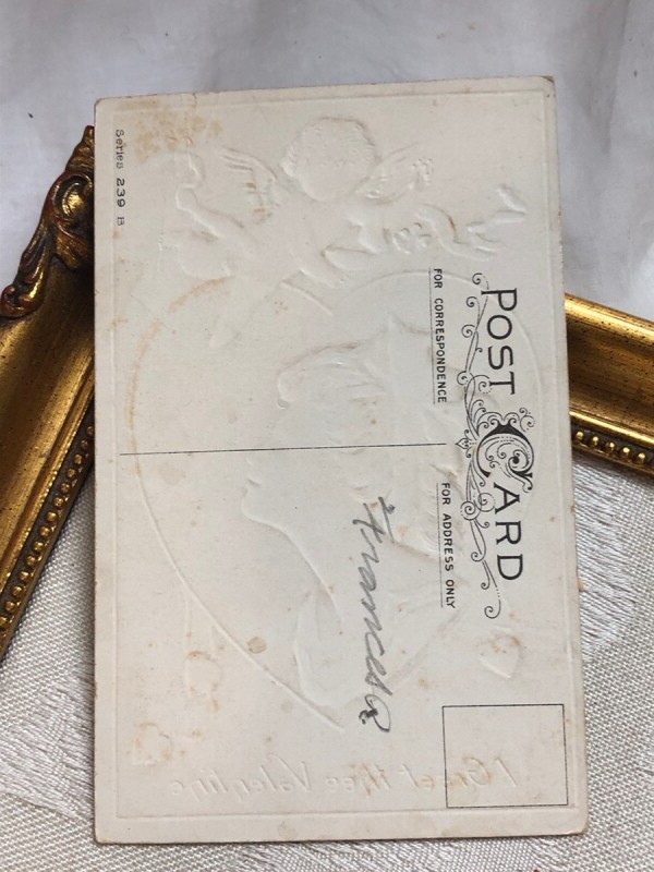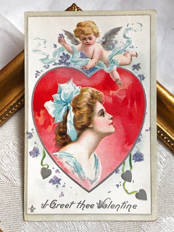 Postcard アンティークポストカード バレンタイン 女性と天使
