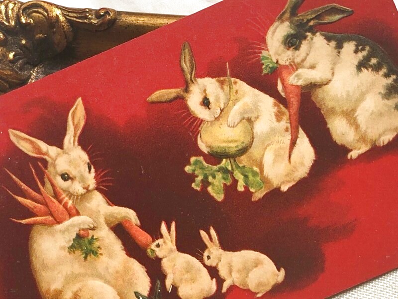 Postcard アンティークポストカード イースター お食事中のウサギの家族 Helena Maguire