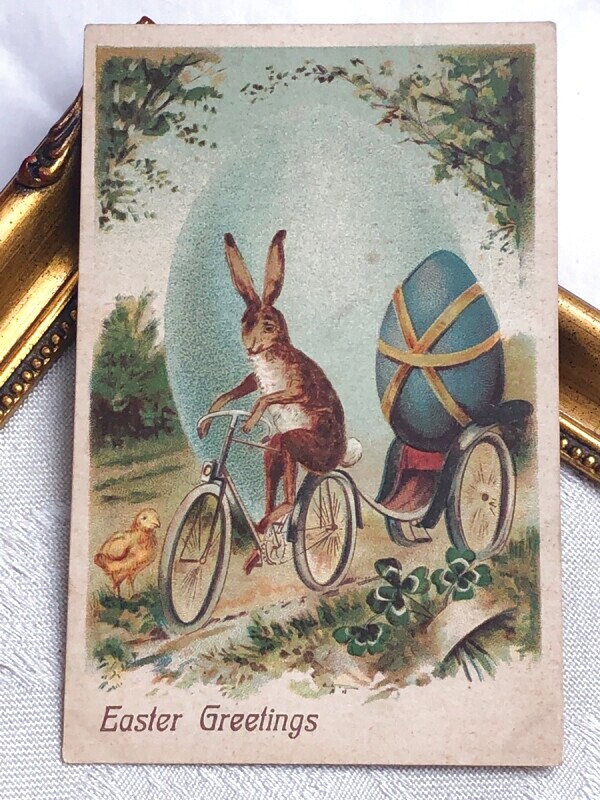 Postcard アンティークポストカード イースター 自転車で卵を運ぶウサギさん (未使用)