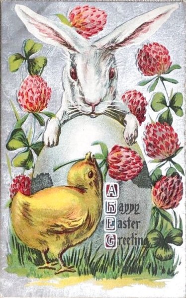 Postcard アンティークポストカード イースター ウサギさんとヒヨコさん 卵