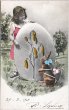 Postcard アンティークポストカード イースター ウサギさんと女の子 大きな卵 フランス1903年