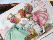 Postcard アンティークポストカード イースター ウサギさんと帽子の女の子たち 1912年