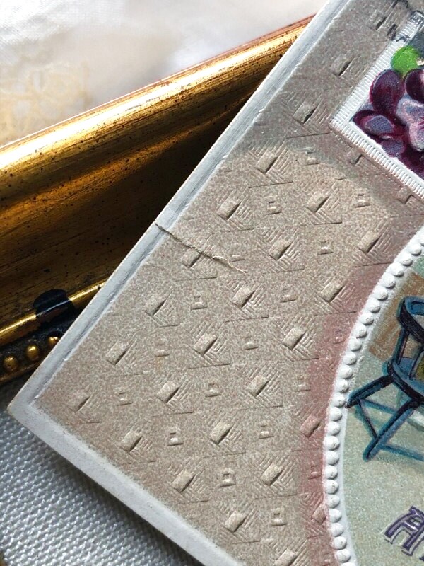◆ 状態: 経年にしては良い状態です。状態については画像をご覧ください。エンボス加工。1cmほどの破れを修復した痕あり
