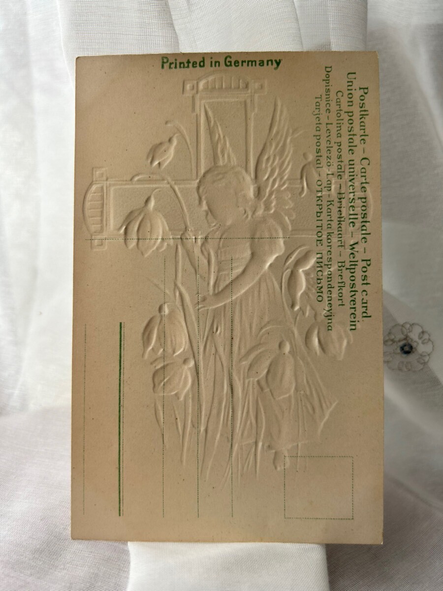Postcard アンティークポストカード イースター スノードロップのお花と天使 (未使用)