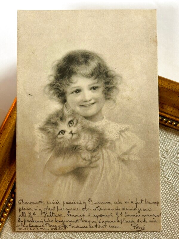Postcard アンティークポストカード 猫と女の子 M.M.VIENNE フランス1902年