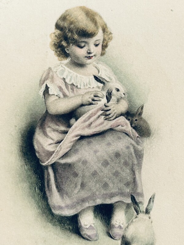 Postcard アンティークポストカード ウサギと女の子 うさぎ M.M.VIENNE フランス切手
