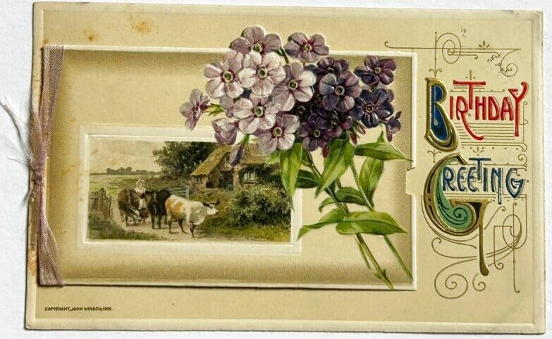 Postcard アンティークポストカード 田舎の風景 牛 ブックレット 仕掛け [g10554]