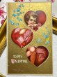 Postcard アンティークポストカード バレンタイン キューピッド天使 金 忘れな草のお花
