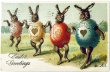 Postcard アンティークポストカード イースター 卵服を着て踊るウサギさん アメリカ1907年