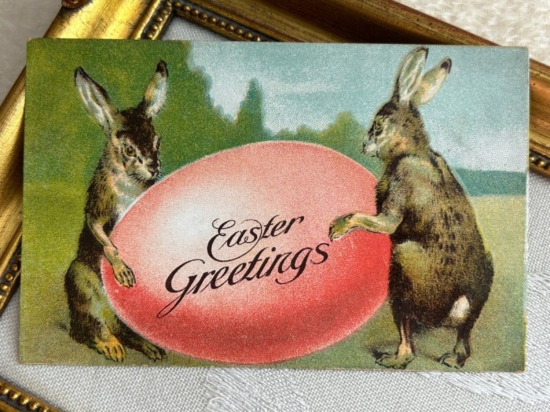 Postcard アンティークポストカード イースター 大きな卵を運ぶウサギさん
