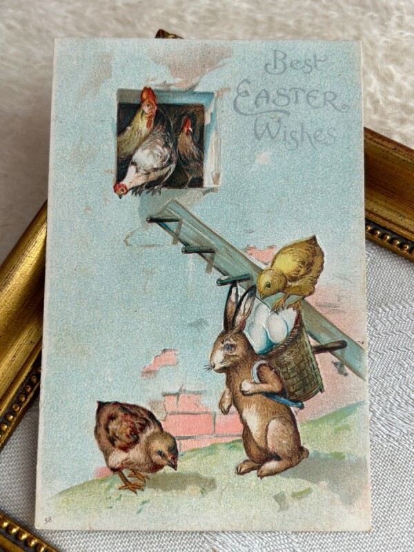Postcard アンティークポストカード イースター 卵を運ぶウサギさん ヒヨコ