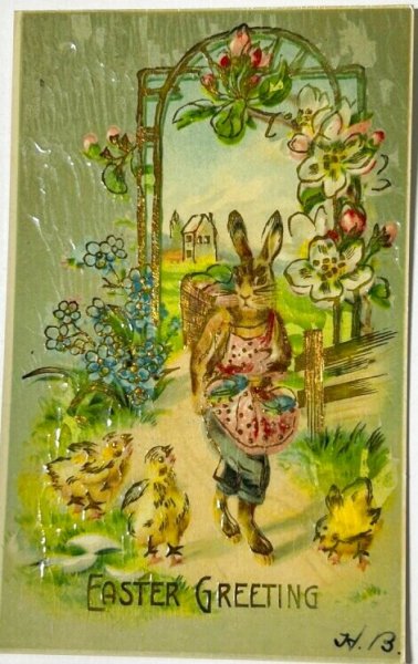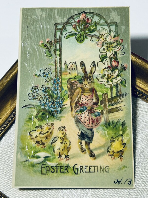 Postcard アンティークポストカード イースター 卵を運ぶウサギさん ヒヨコ