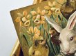 Postcard アンティークポストカード イースター ウサギとヒヨコとラッパスイセンのお花