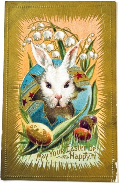 Postcard アンティークポストカード イースター 卵から生まれたウサギさん スズランのお花 (未使用)