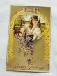 Postcard アンティークポストカード イースター ウサギと女の子 スミレ [g11250]