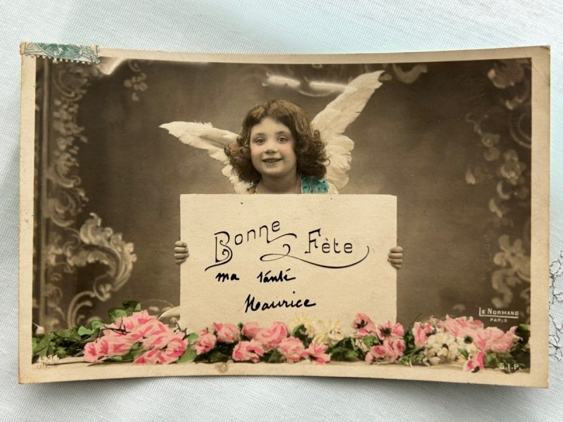 Postcard アンティークポストカード 写真 天使のメッセージ フランス