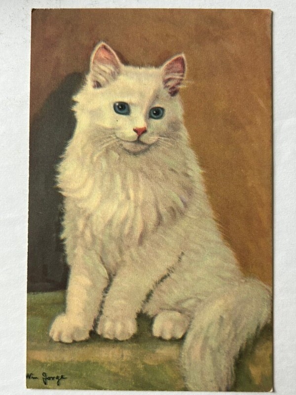 Postcard アンティークポストカード 青い瞳の白猫 長毛