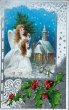 Postcard アンティークポストカード クリスマス 祈る天使たち 教会 ホーリー