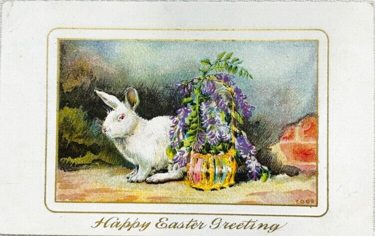 Postcard アンティークポストカード イースター ウサギ 藤の花