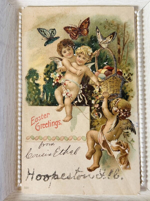 Postcard アンティークポストカード イースター 卵と天使 蝶々
