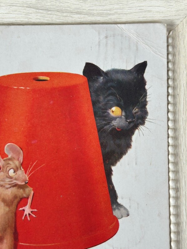 Postcard アンティークポストカード Good Luck 黒猫と植木鉢の陰に隠れるネズミ Lawson Wood イギリス1930年