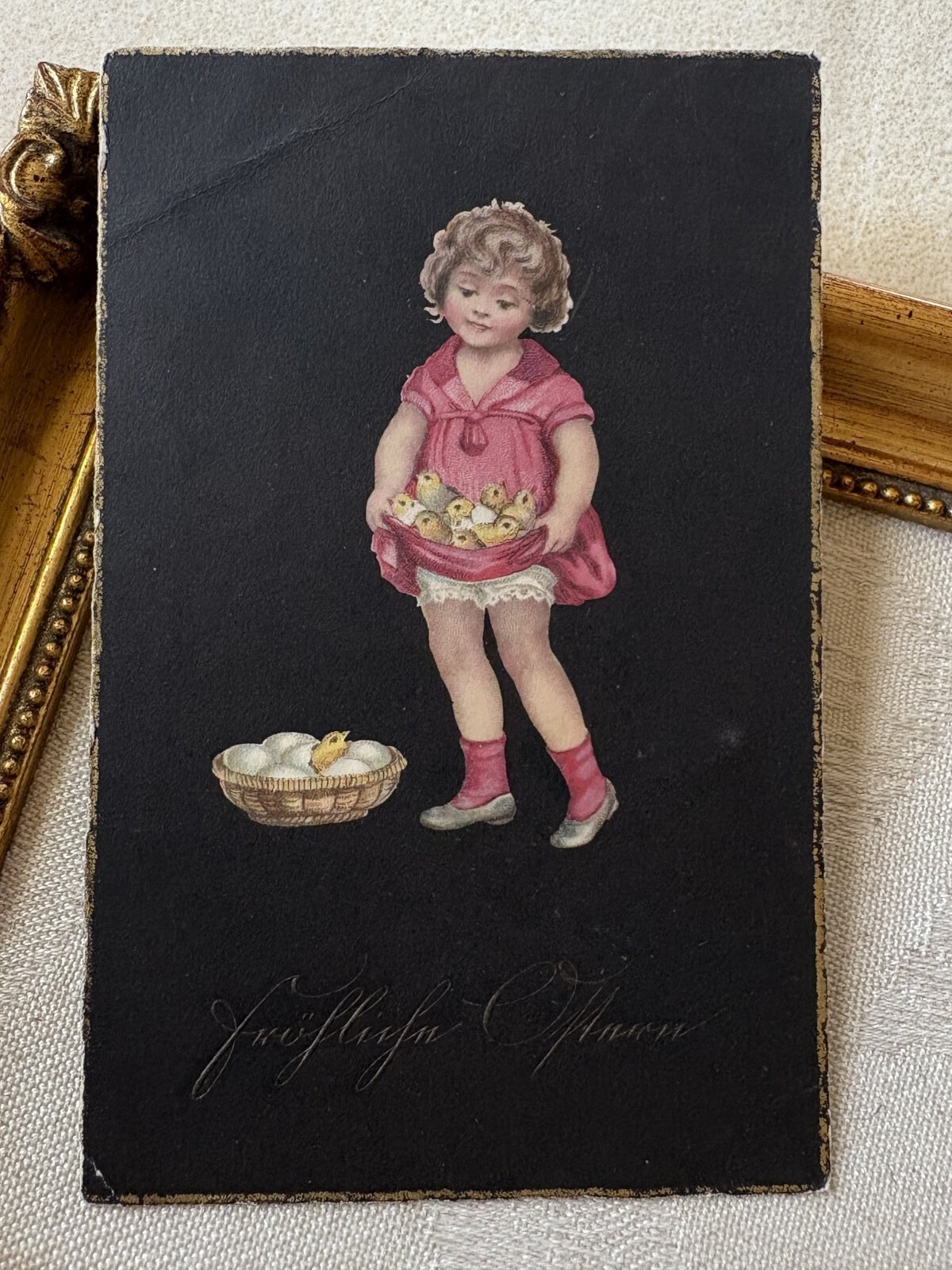 Postcard アンティークポストカード イースター ヒヨコと女の子 卵 ドイツ