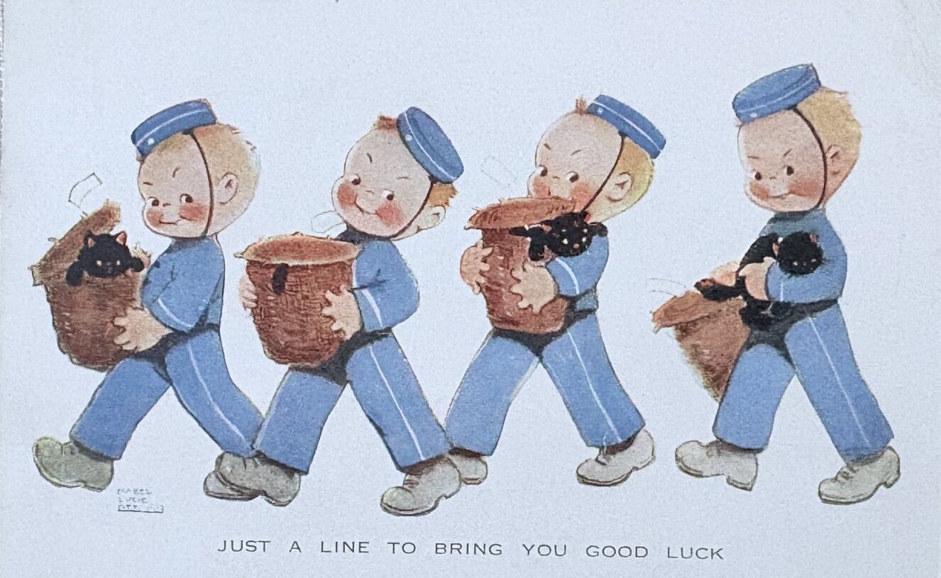 Postcard アンティークポストカード 幸運を呼ぶ黒猫を運ぶボーイさん 1339 Mabel Lucie Attwell