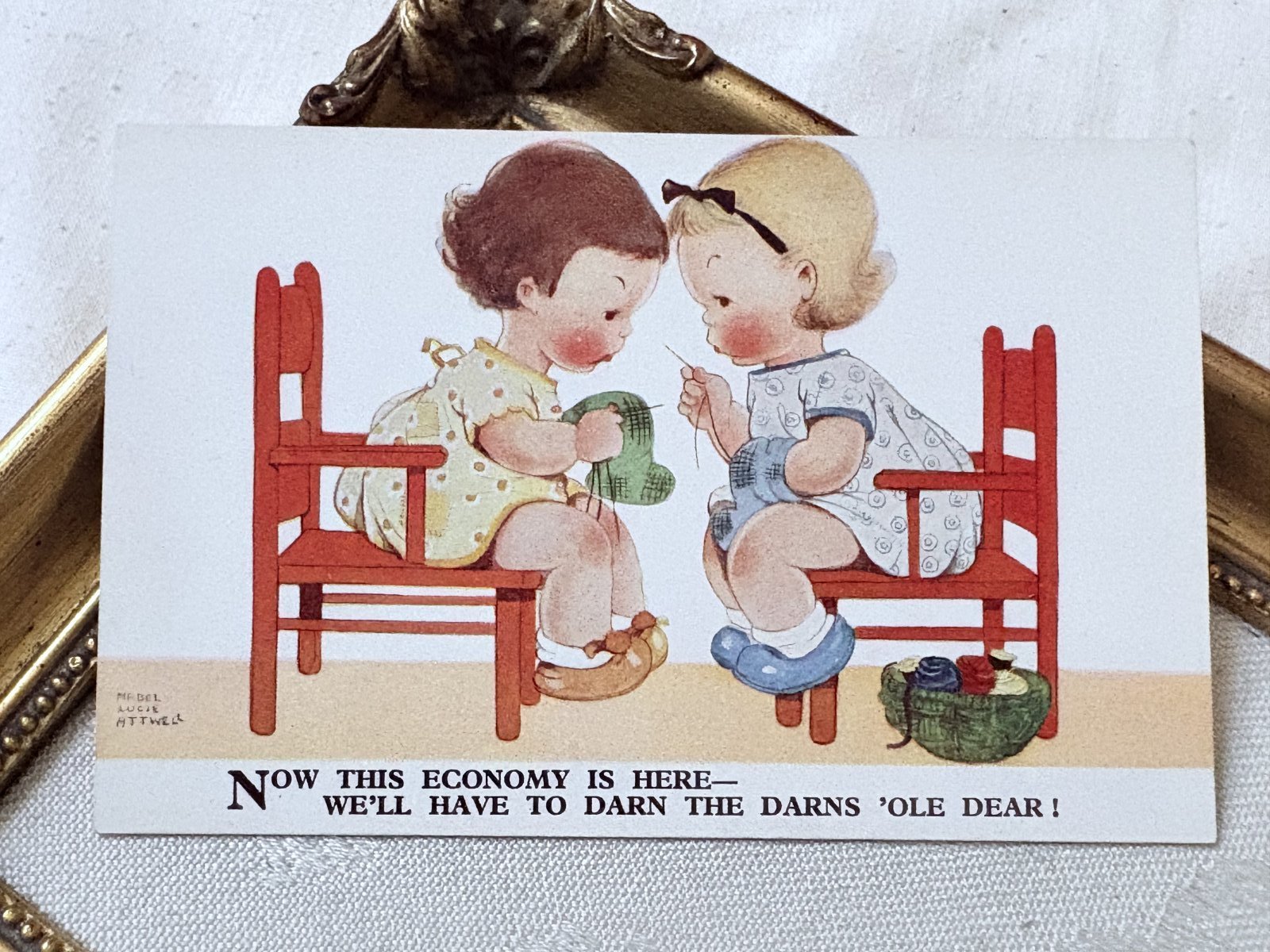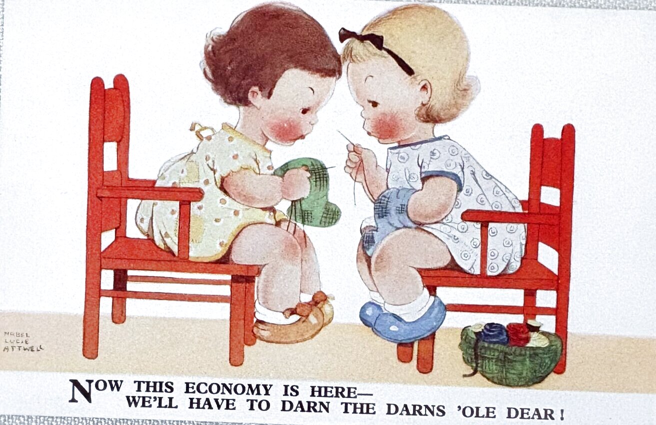 Postcard アンティークポストカード 編み物をする女の子 Mabel Lucie Attwell (未使用)