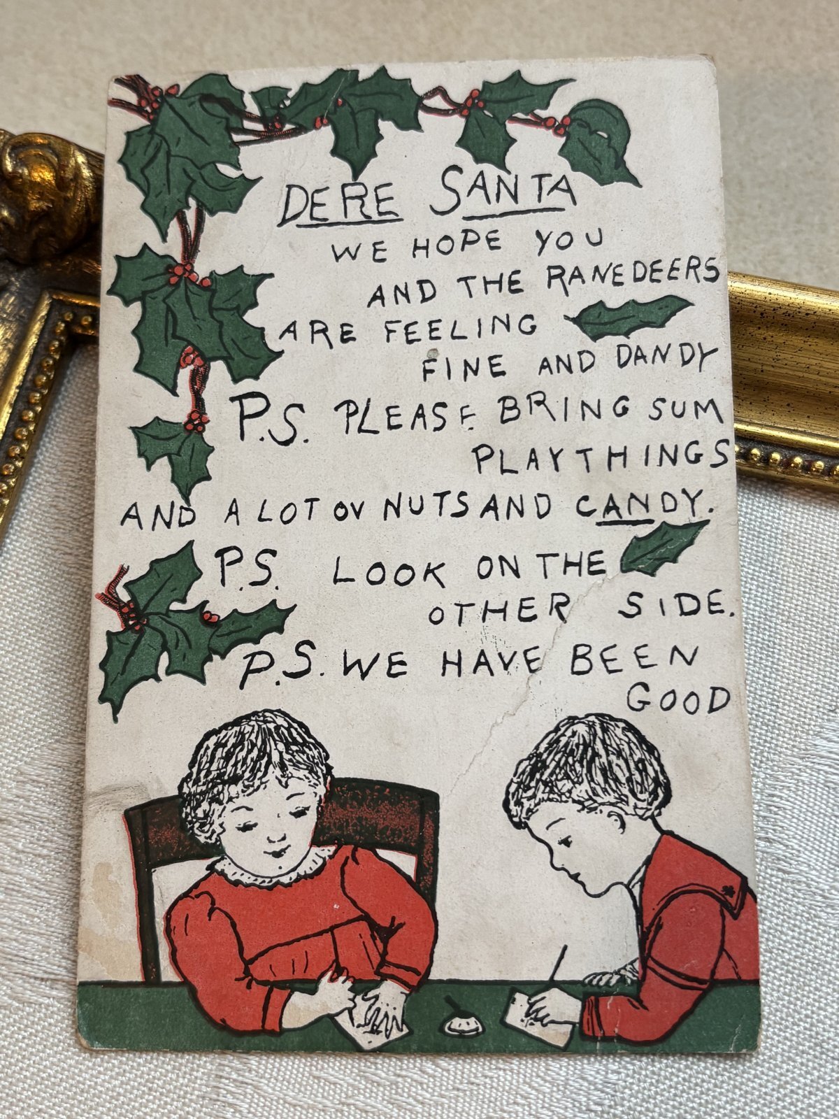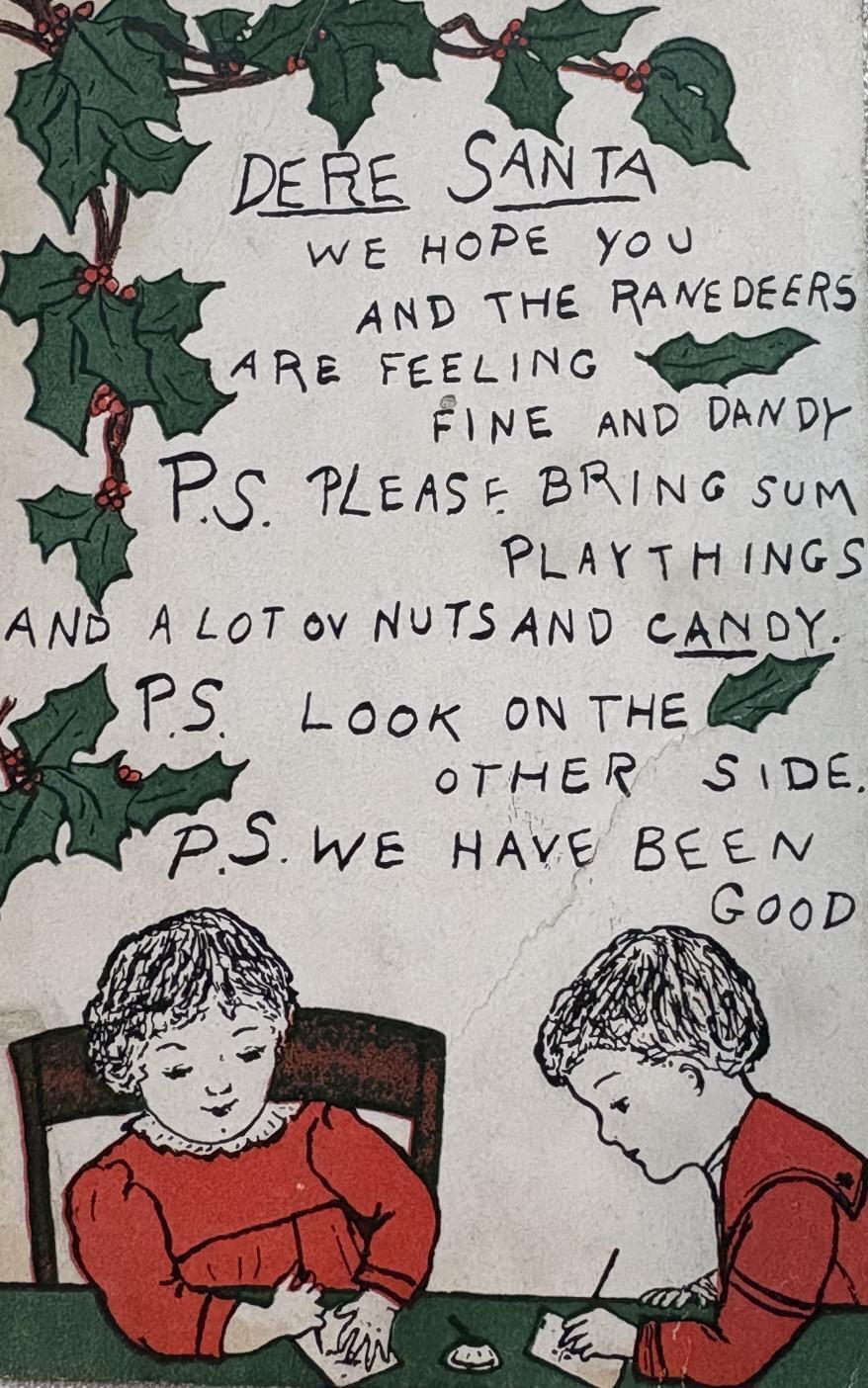 Postcard アンティークポストカード サンタさんに手紙を書く子どもたち アメリカ