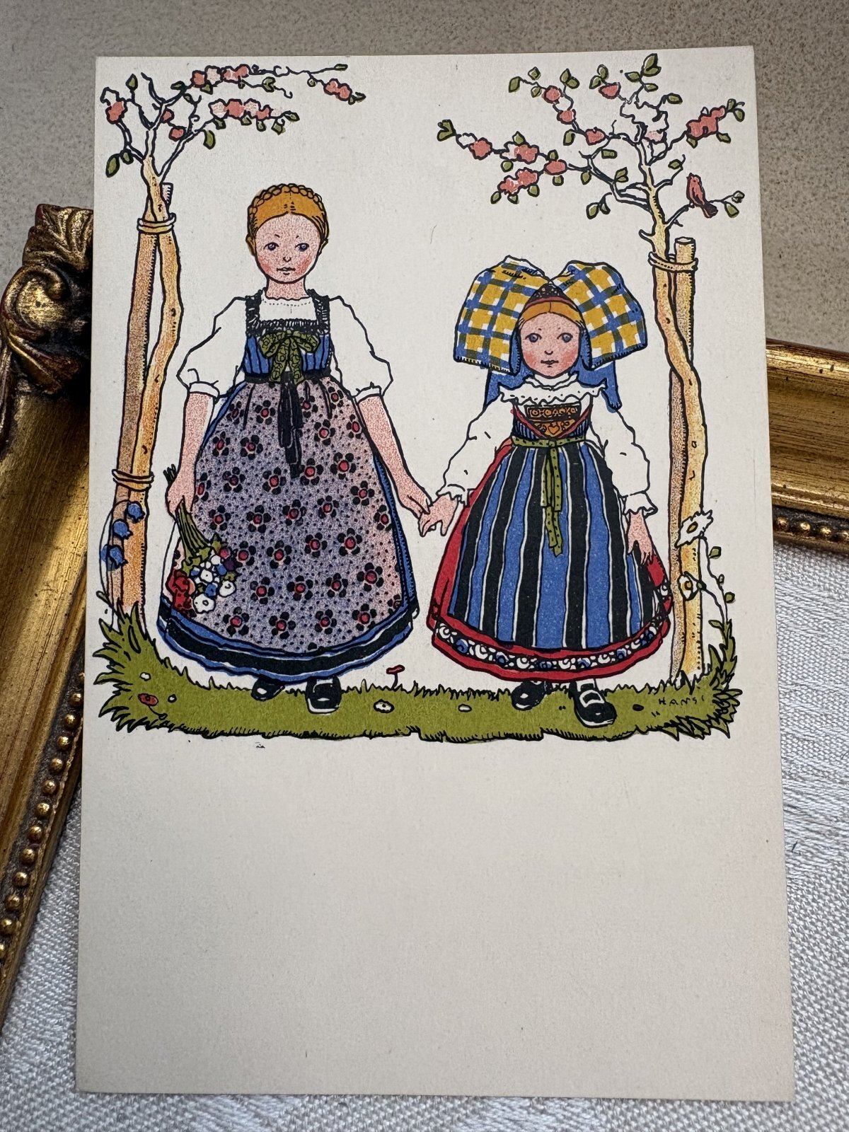 Postcard アンティークポストカード フランス アンザス地方の女の子たち 民族衣装 HANSi(未使用)