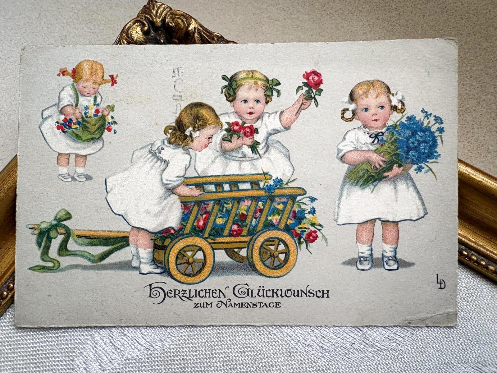 Postcard アンティークポストカード お花と女の子 Lia Doring ドイツ1929年