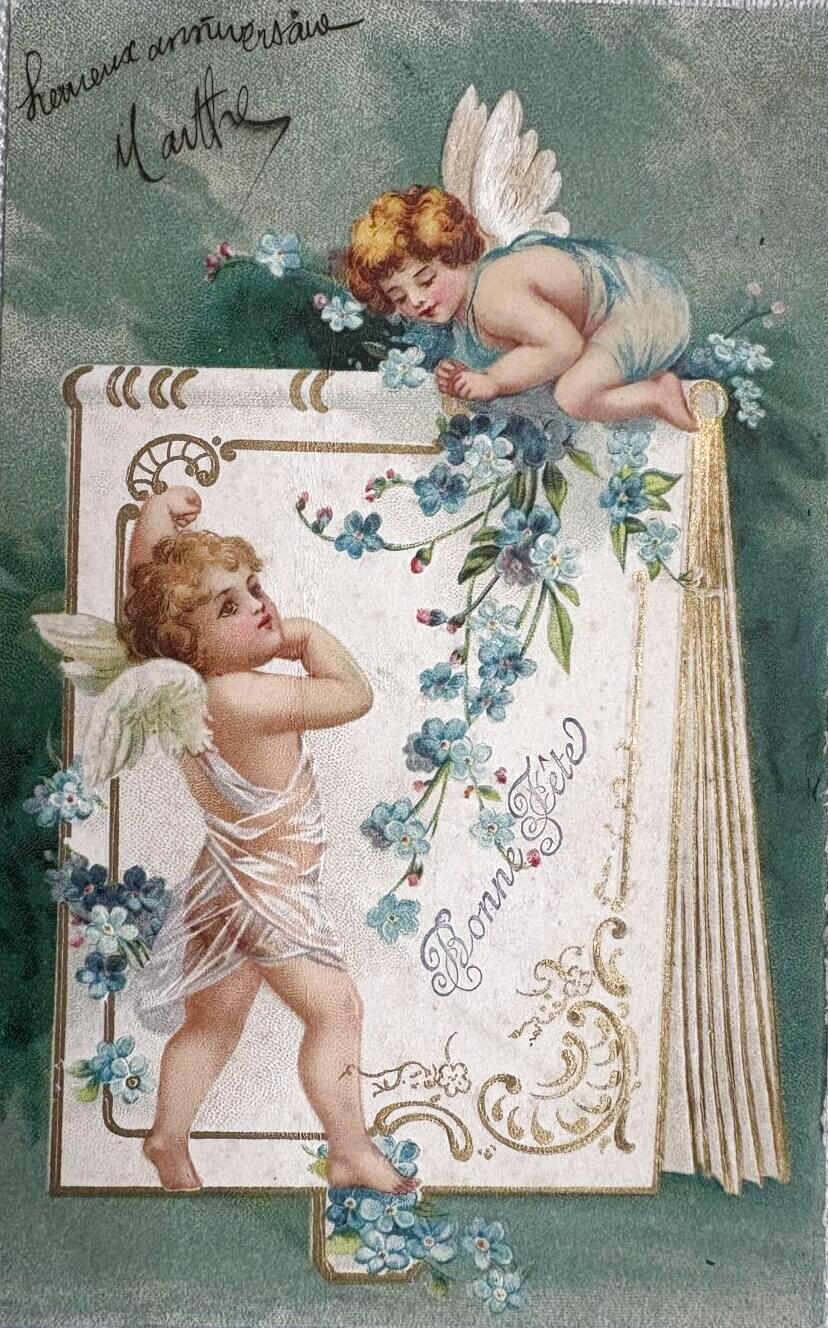 Postcard アンティークポストカード 天使のアルバム 忘れな草 Ellen Clapsaddle フランス1905年