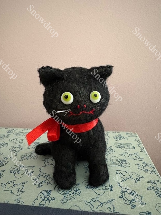 【ご予約注文】Snowdrop ハンドメイド アンティーク風ぬいぐるみ 黒猫 (11cm)