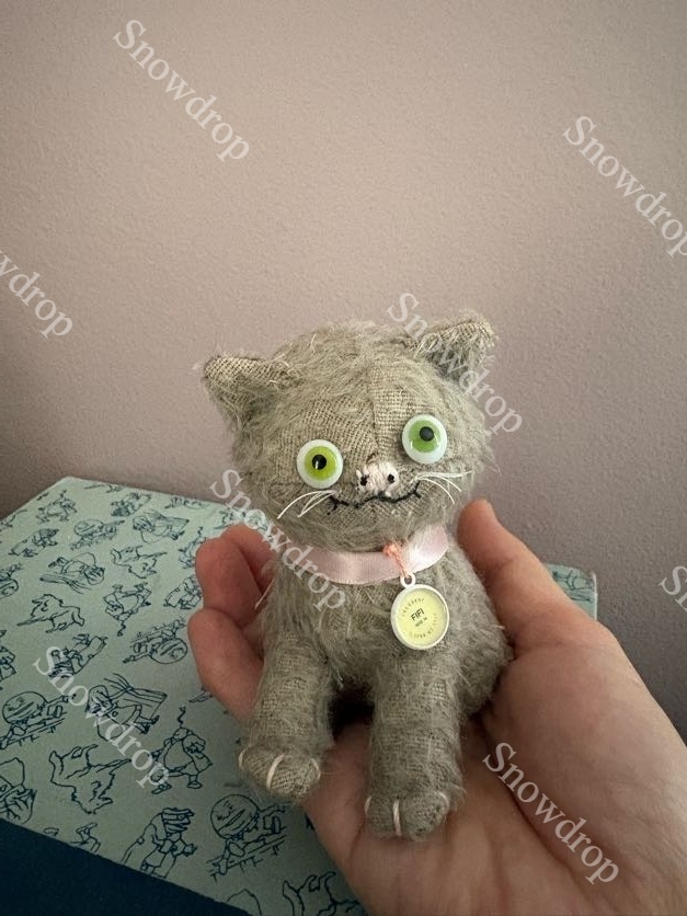 【ご予約注文】Snowdrop ハンドメイド アンティーク風ぬいぐるみ グレー猫 (10.5cm) [2]