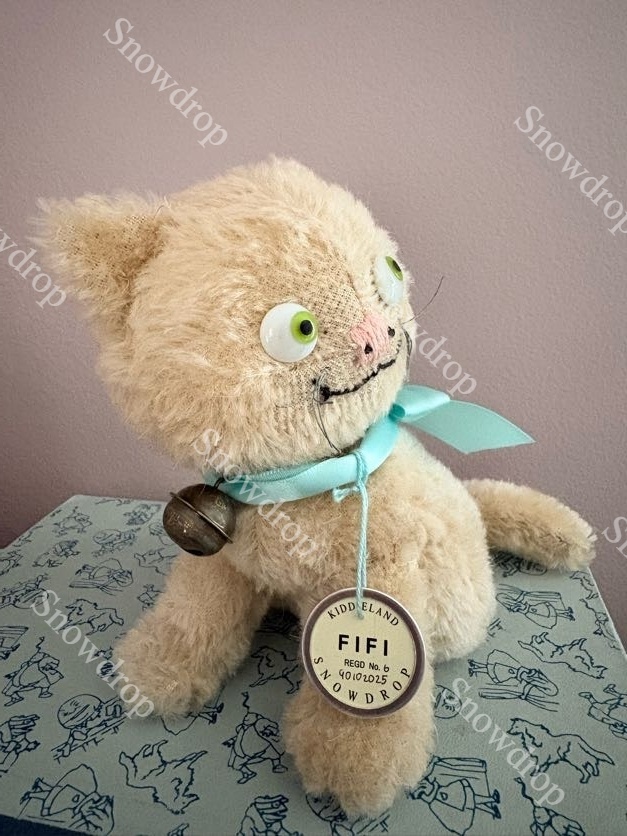 【ご予約注文】Snowdrop ハンドメイド アンティーク風ぬいぐるみ 白猫 オートミールモヘア (16.5cm)