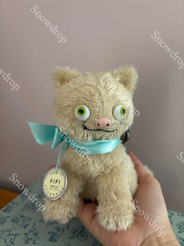 【ご予約注文】Snowdrop ハンドメイド アンティーク風ぬいぐるみ 猫 オートミールモヘア (14cm)