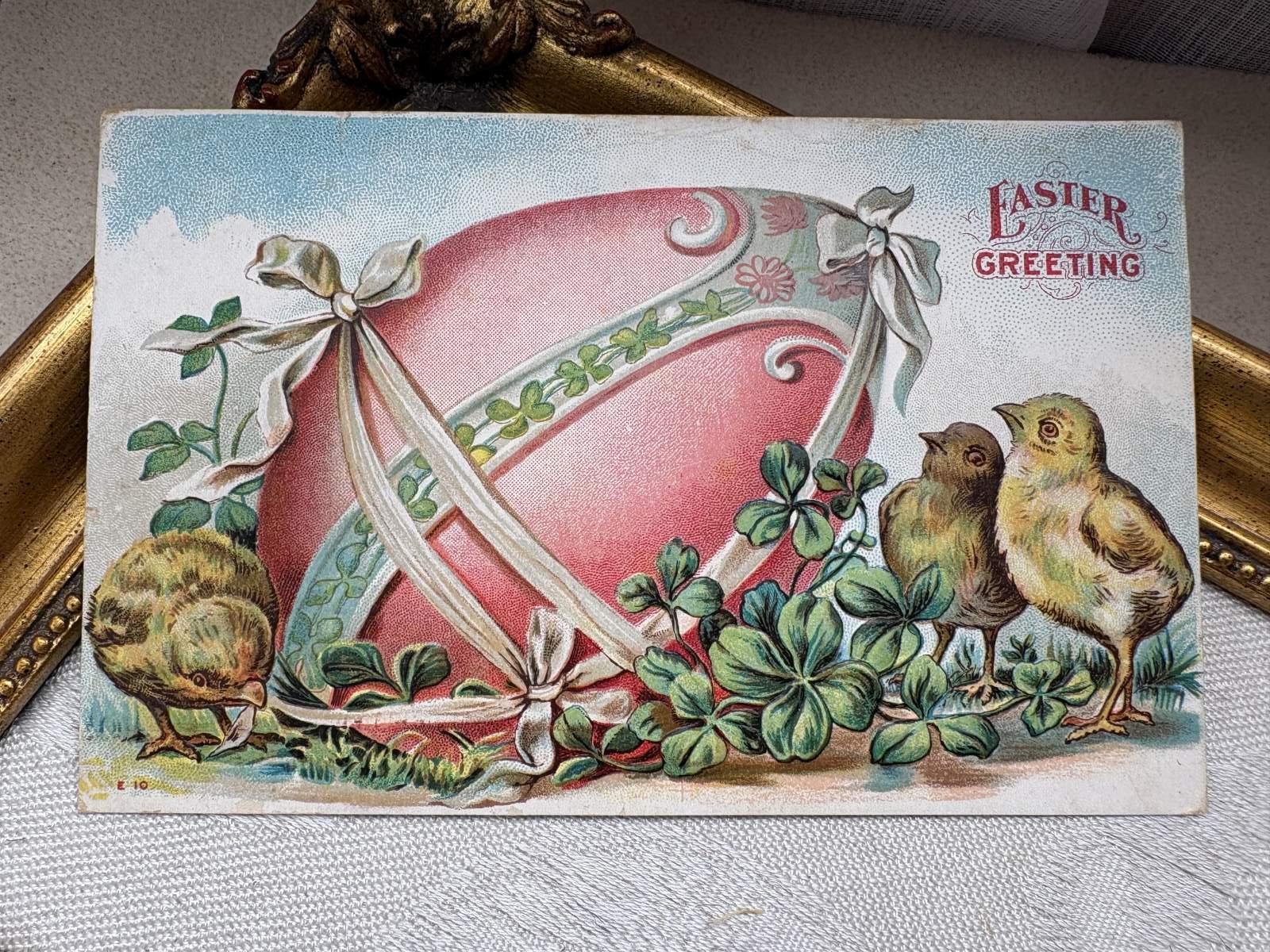 Postcard アンティークポストカード イースター ヒヨコと大きな卵 四つ葉