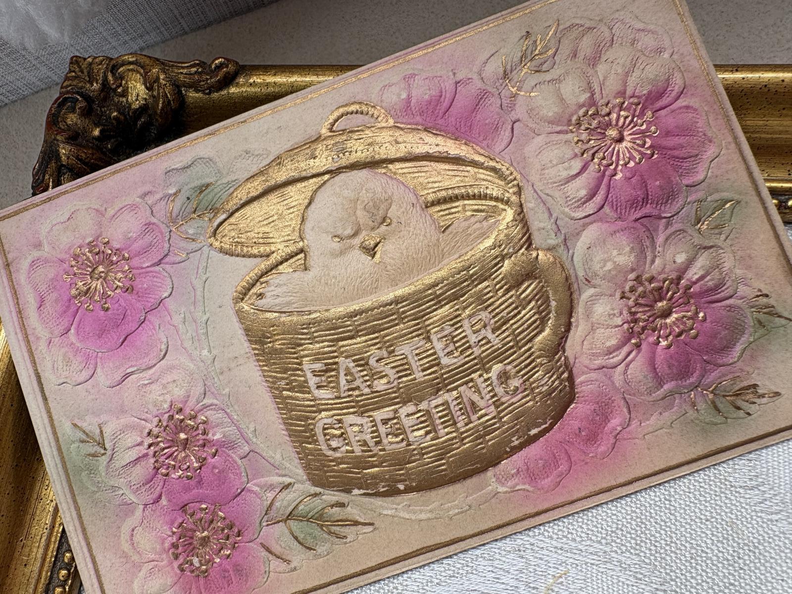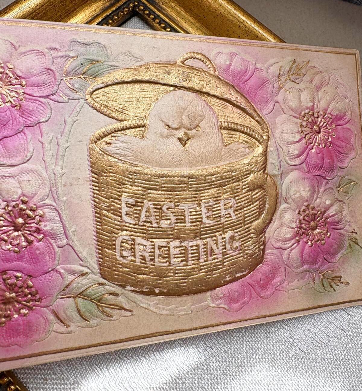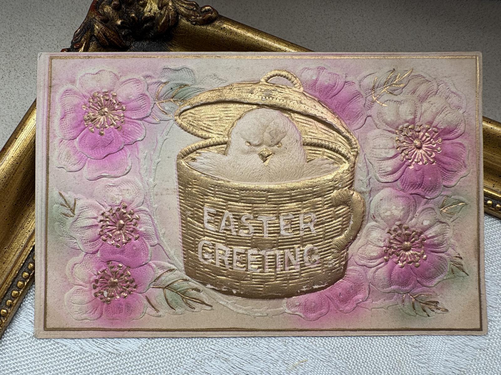 Postcard アンティークポストカード イースター バスケットの中のヒヨコ