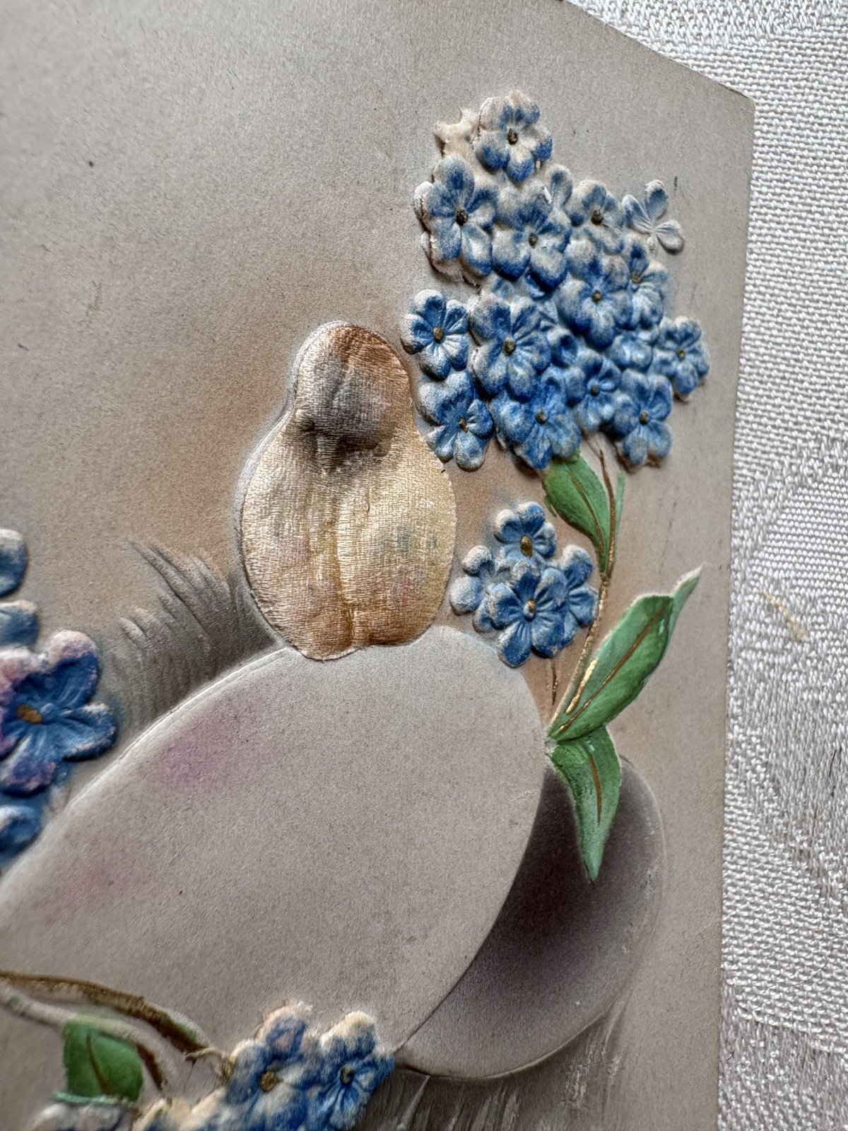Postcard アンティークポストカード イースター ヒヨコと忘れな草のお花と卵 アメリカ1909年