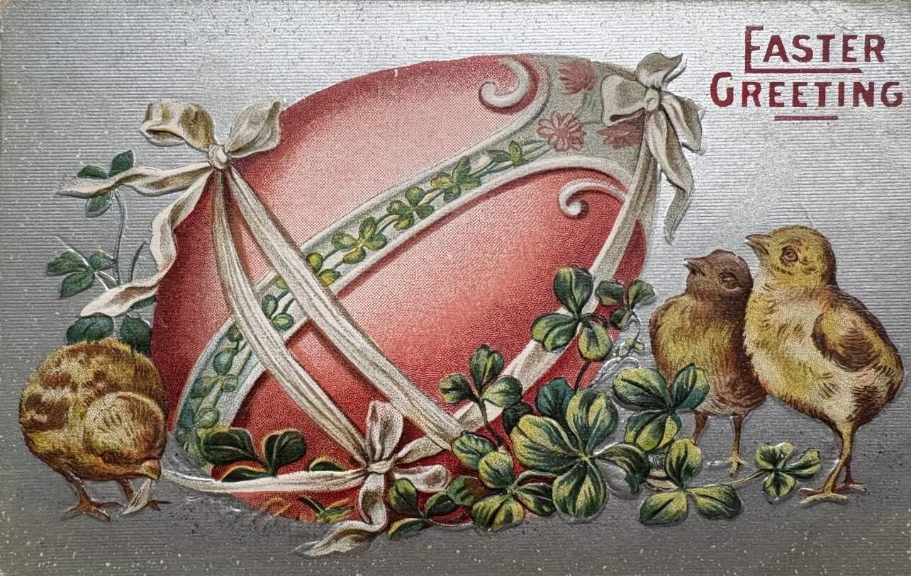 Postcard アンティークポストカード イースター ヒヨコと大きな卵 (未使用)
