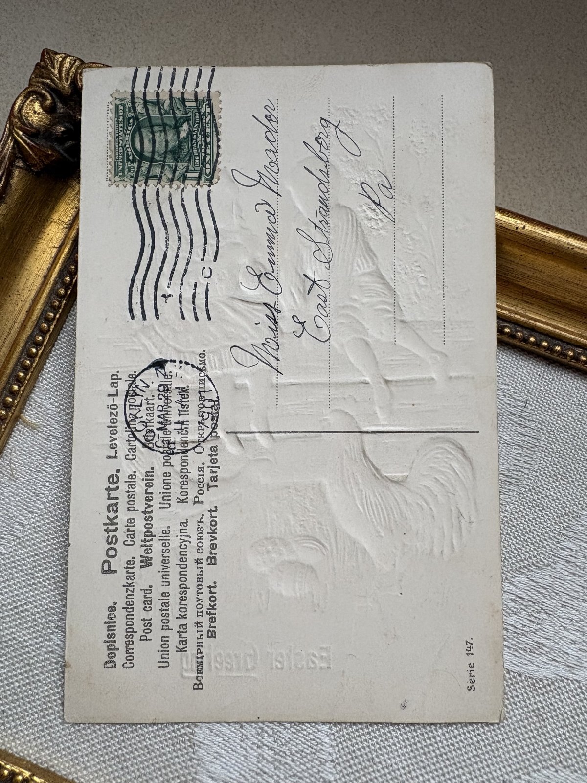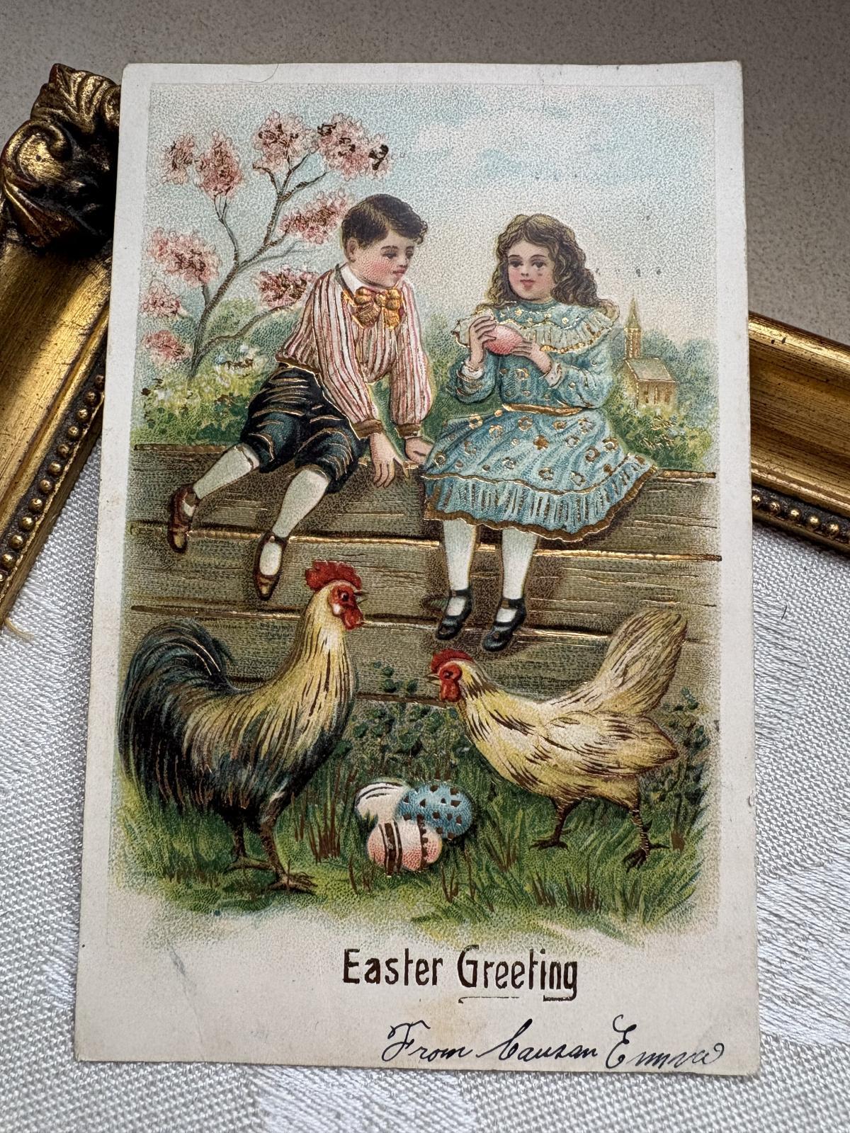 Postcard アンティークポストカード イースター ニワトリと子どもたち 卵 アメリカ1907年