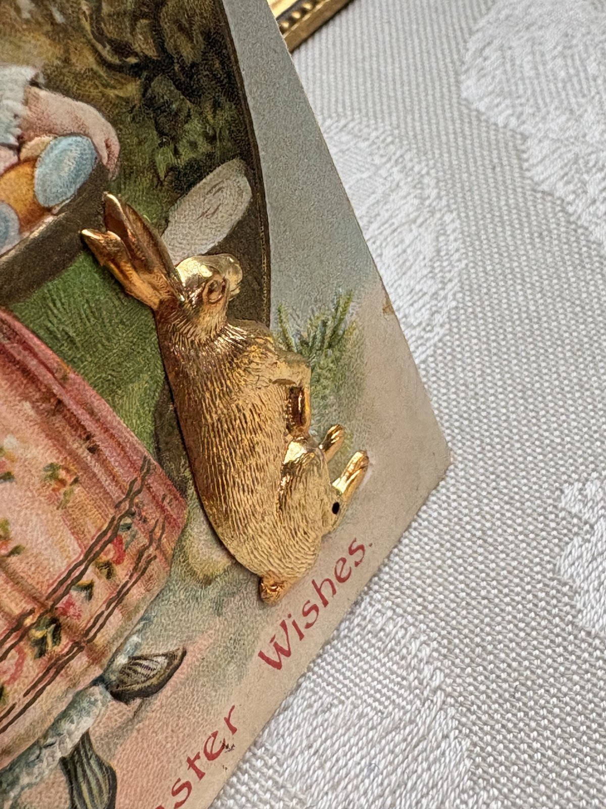 ◆ 状態: 経年にしては良い状態です。状態については、画像にてご確認ください。エンボス加工。ウサギのメタルパーツが貼り付けられている珍しいポストカードです。
