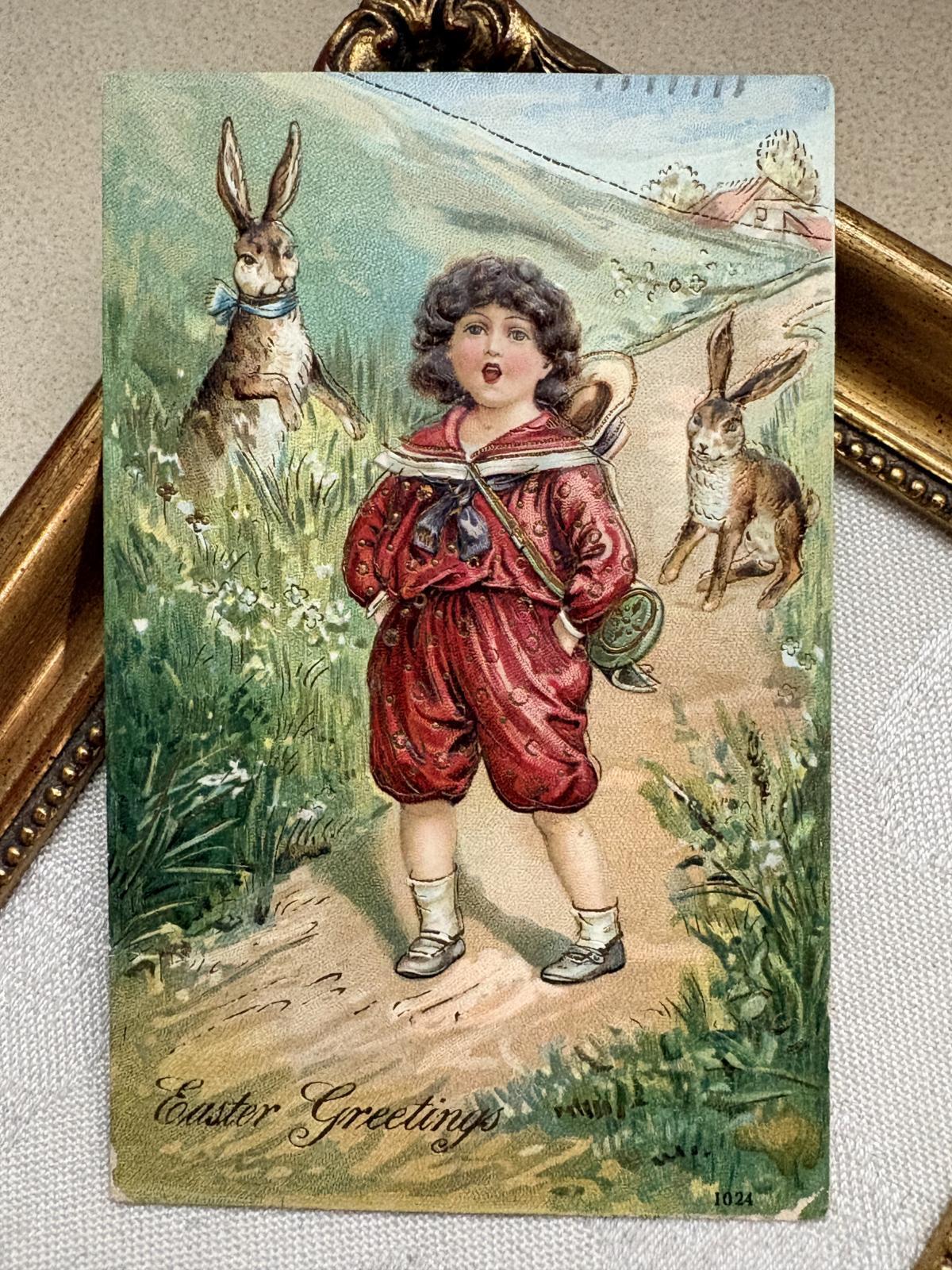 Postcard アンティークポストカード イースター ウサギと男の子 うさぎ 兎 アメリカ1908年