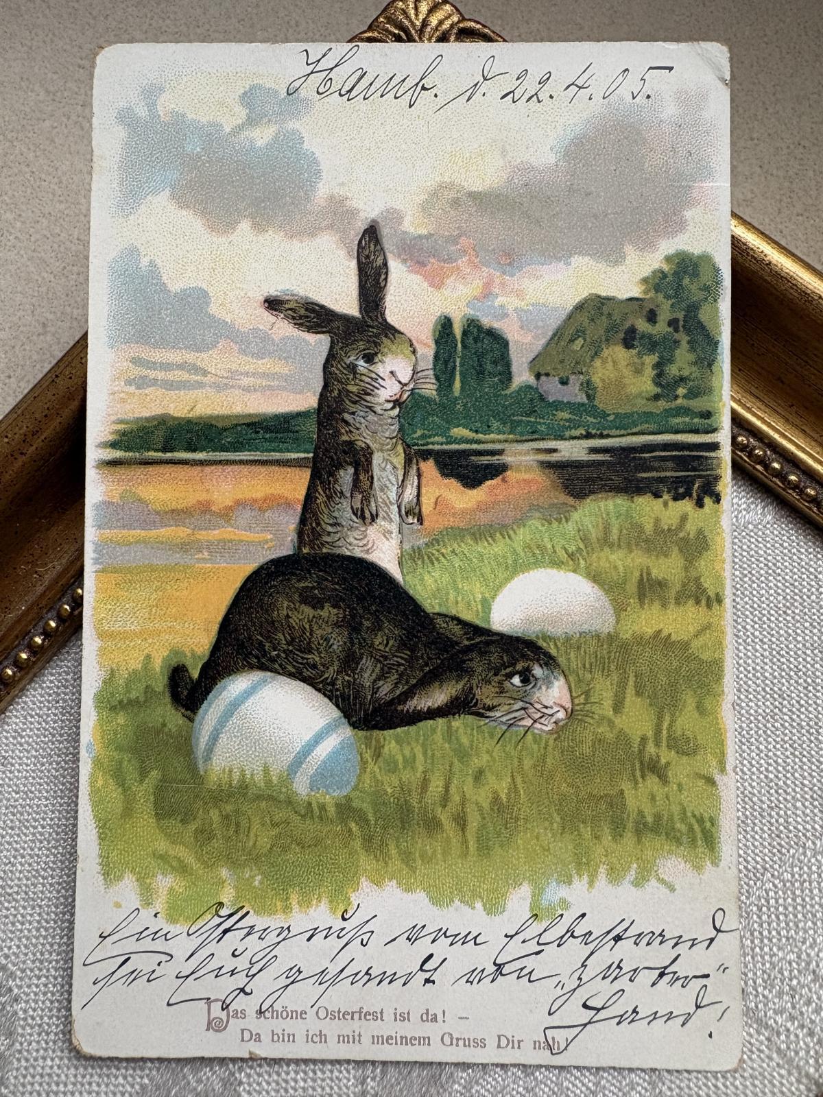 Postcard アンティークポストカード イースター ウサギさんと卵 兎 うさぎ ドイツ1905年