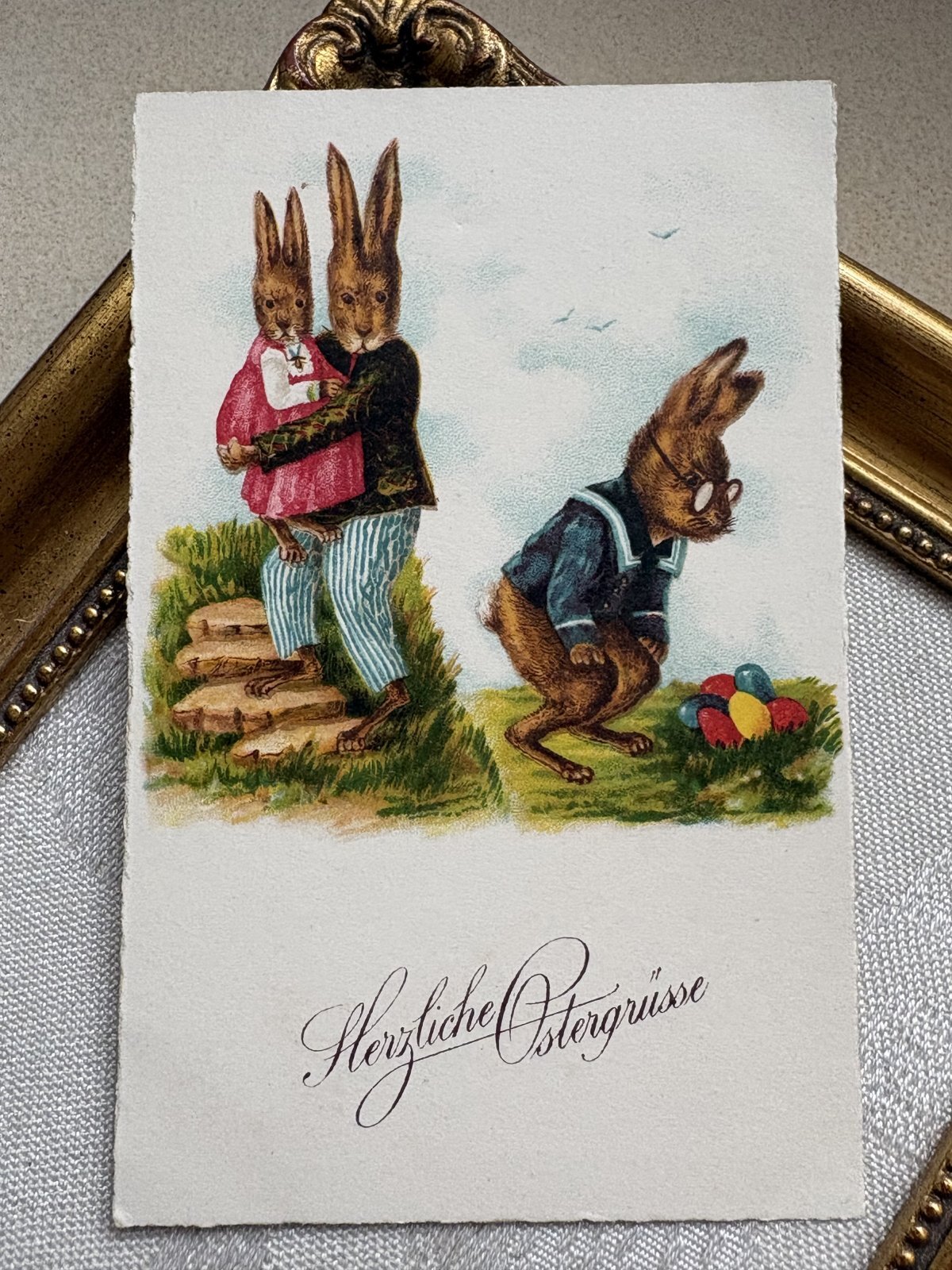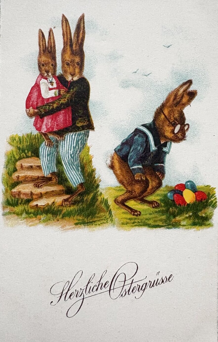 Postcard アンティークポストカード イースター 卵とウサギの親子 兎 うさぎ (未使用)
