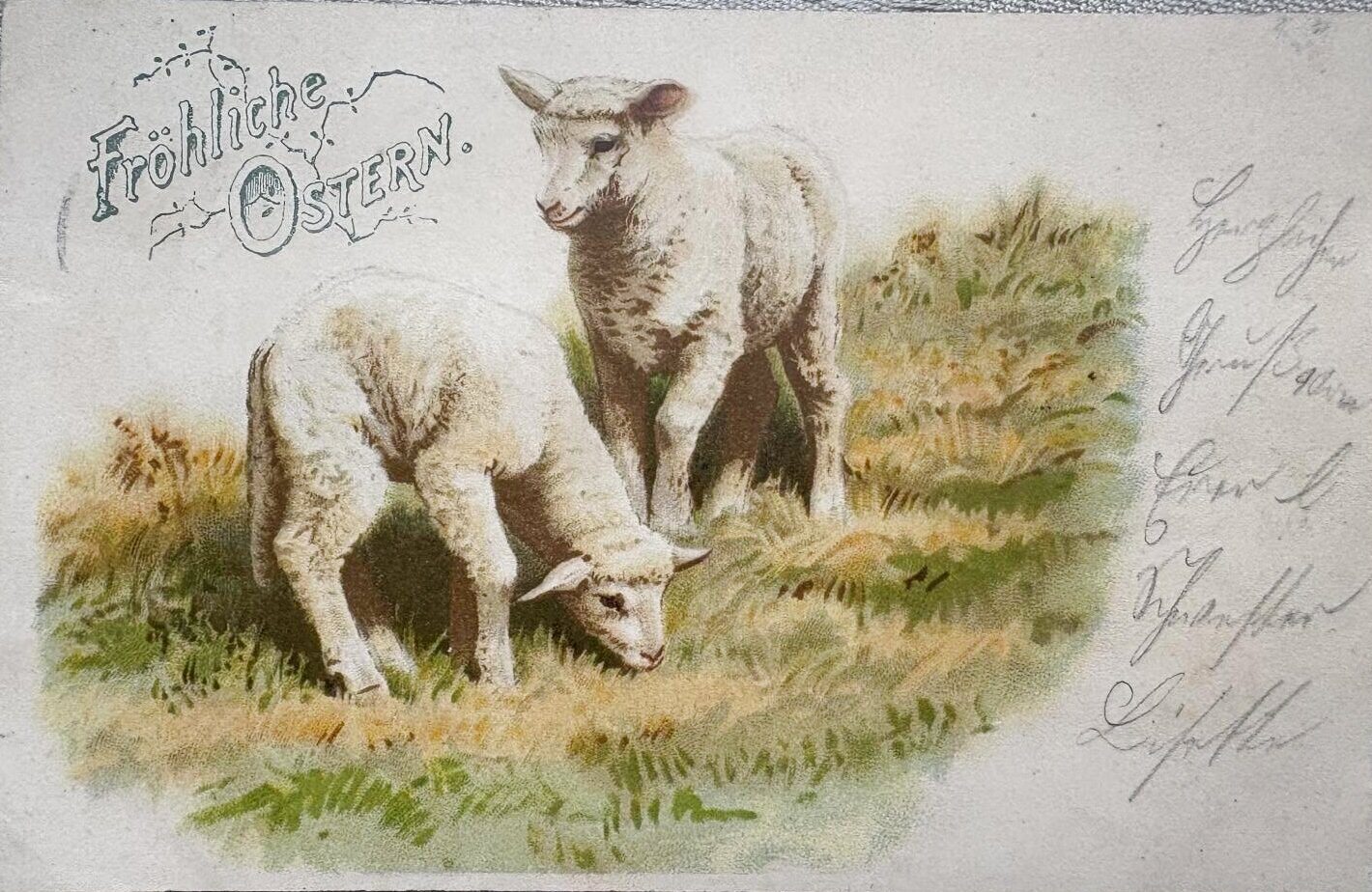 Postcard アンティークポストカード イースター 牧場の羊 1903年 ドイツ