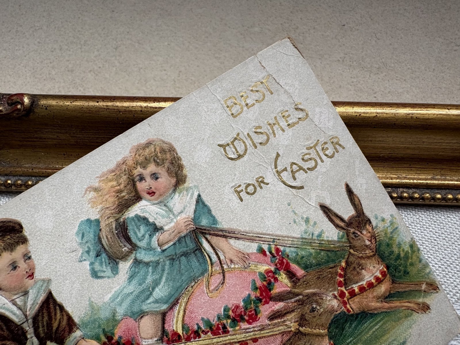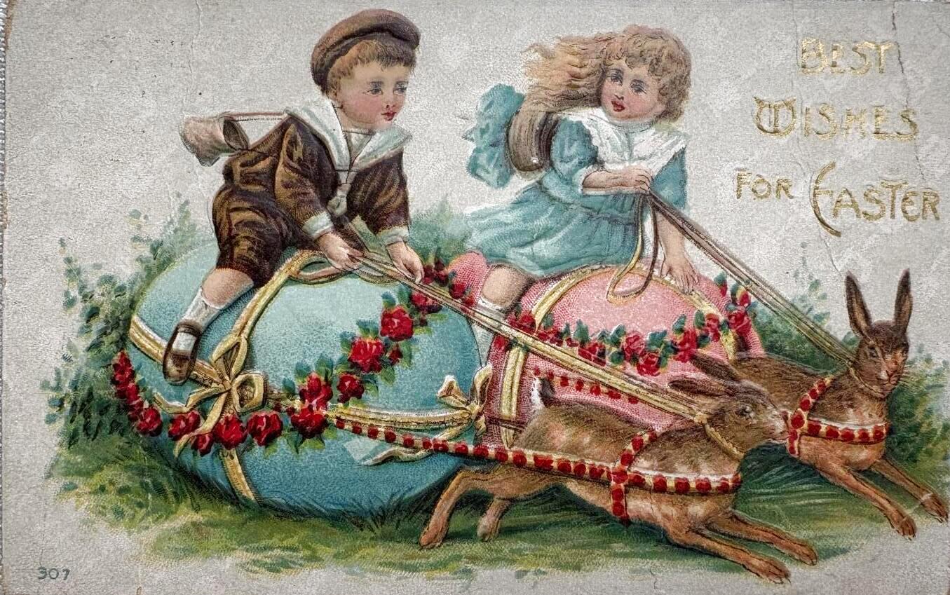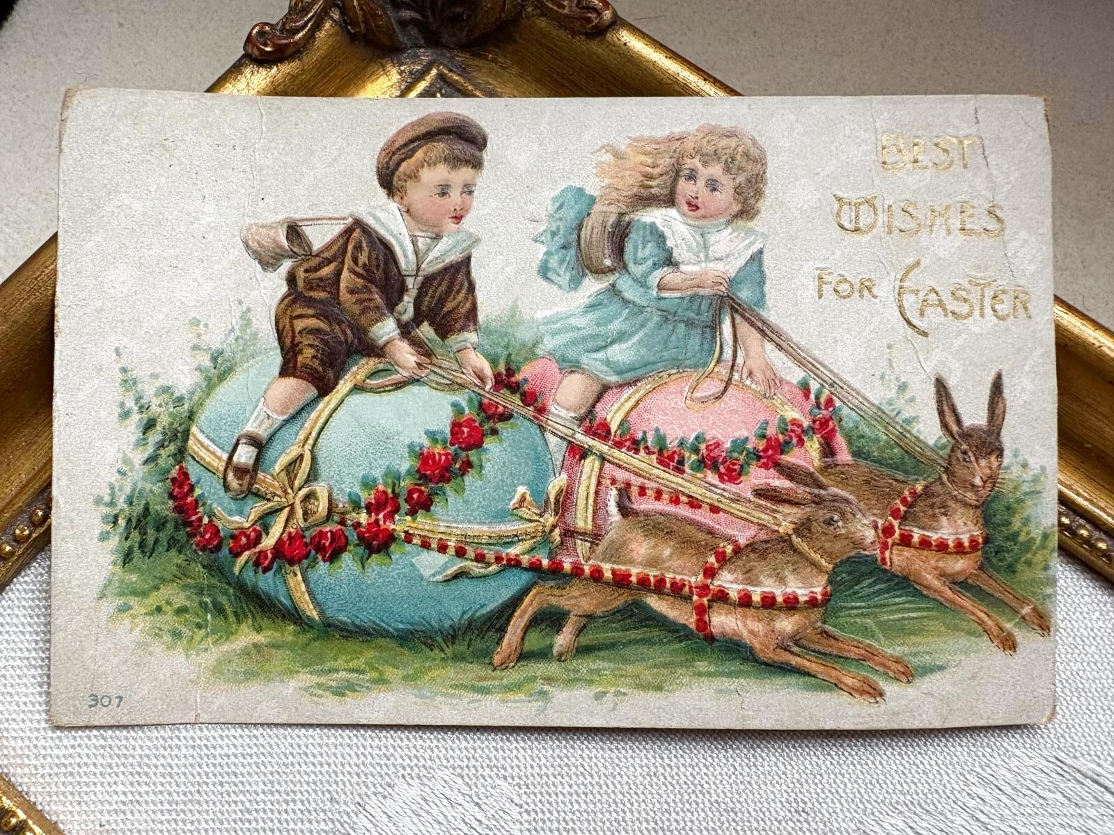 Postcard アンティークポストカード イースター ウサギの卵に乗る子どもたち