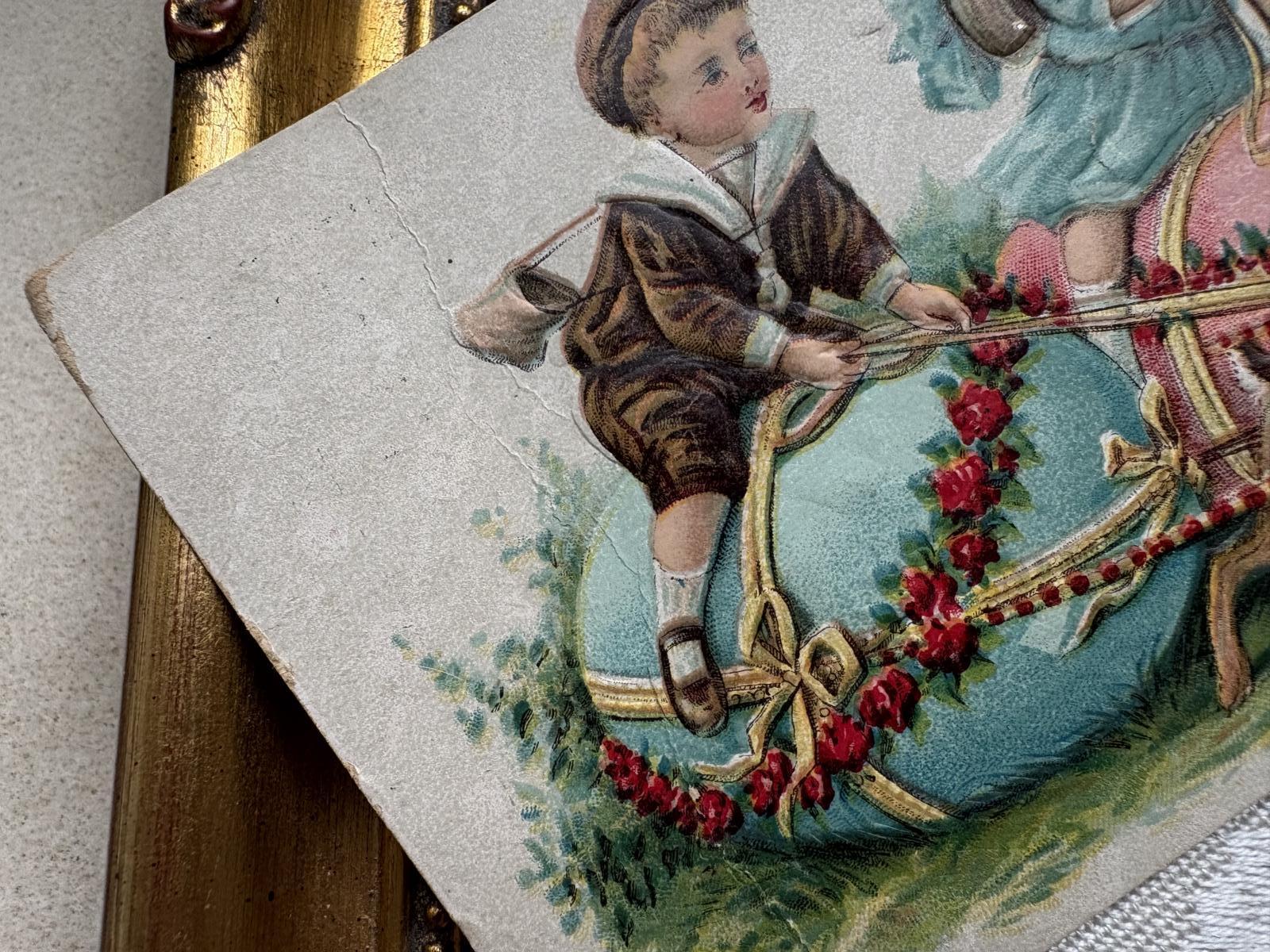 Postcard アンティークポストカード イースター ウサギの卵に乗る子どもたち [g12284]