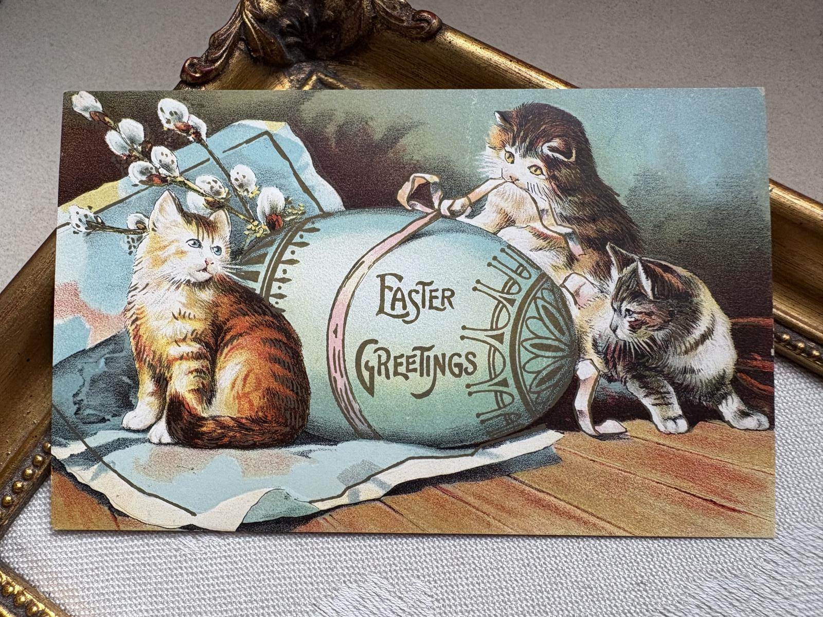 Postcard アンティークポストカード イースター 3匹の子猫と卵