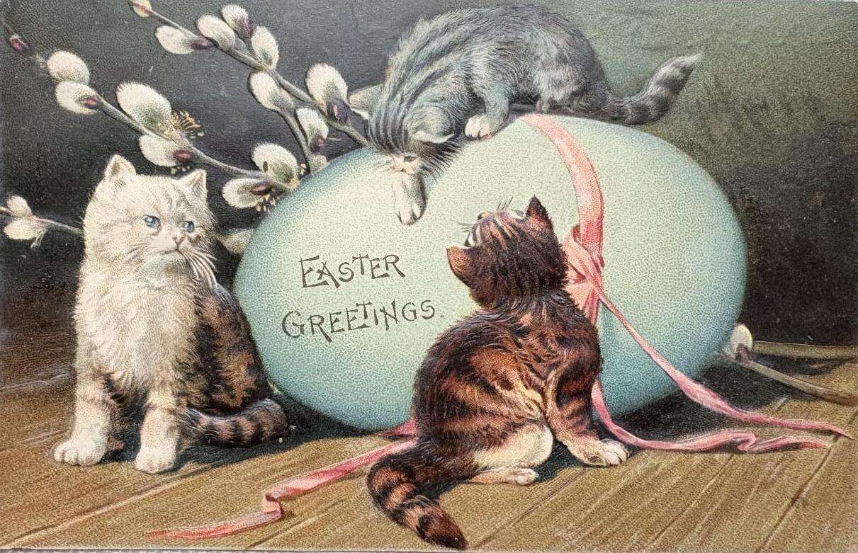 Postcard アンティークポストカード イースター 3匹の子猫と卵